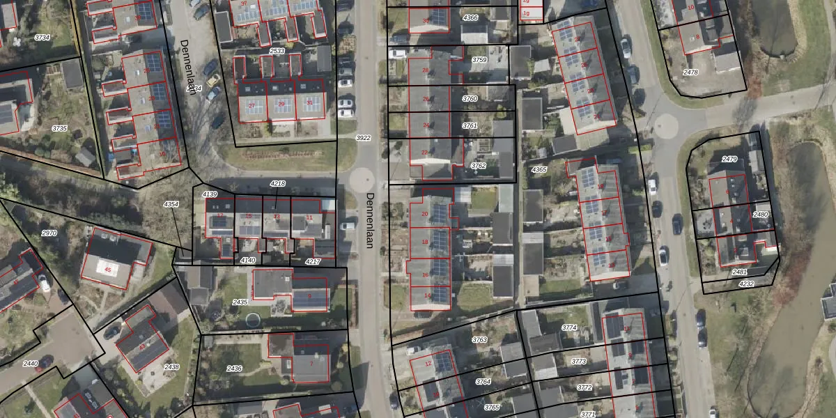 Het perceel waarop Dennenlaan 20 staat heeft een oppervlakte van 3061 m². Dit is een zeer groot perceel. De perceeloppervlakte wordt geregistreerd door het Kadaster. Gedetailleerde informatie over de maten van dit perceel kunt u vinden in het rapport Kadastrale kaart met maatvoering van Dennenlaan 20.