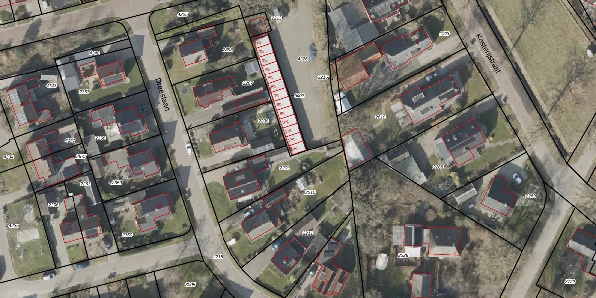 Het perceel waarop het adres ligt is HVT03-I-3002. De afkorting 'HVT03' staat voor kadastrale gemeente Havelte. Het perceel is 259 m² groot. Dat is kleiner dan de gemiddelde perceeloppervlakte in Havelte, dat op 1,1 ha ligt. De grootste perceeloppervlakte in de kadastrale gemeente is 1,09 km². De kleinste oppervlakte bedraagt 0 m². Er zijn 13 adressen aanwezig op het perceel. In de Basisregistratie Kadaster (BRK) werden de grenzen van het perceel geregistreerd op 12-11-2008.
