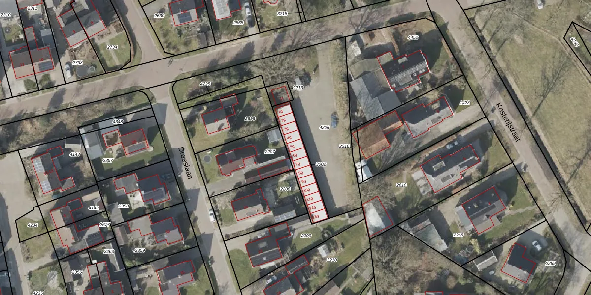 Het perceel waarop het adres ligt is HVT03-I-3002. De afkorting 'HVT03' staat voor kadastrale gemeente Havelte. Het perceel is 259 m² groot. Dat is kleiner dan de gemiddelde perceeloppervlakte in Havelte, dat op 1,1 ha ligt. De grootste perceeloppervlakte in de kadastrale gemeente is 1,09 km². De kleinste oppervlakte bedraagt 0 m². Op het perceel zijn 13 adressen aanwezig. De huidige grenzen van het perceel zijn digitaal in de Basisregistratie Kadaster (BRK) geregistreerd op 12-11-2008.