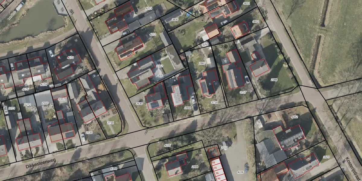 Gebruik de zoekbalk of klik op een perceel voor informatie over de adressen binnen dit perceel.