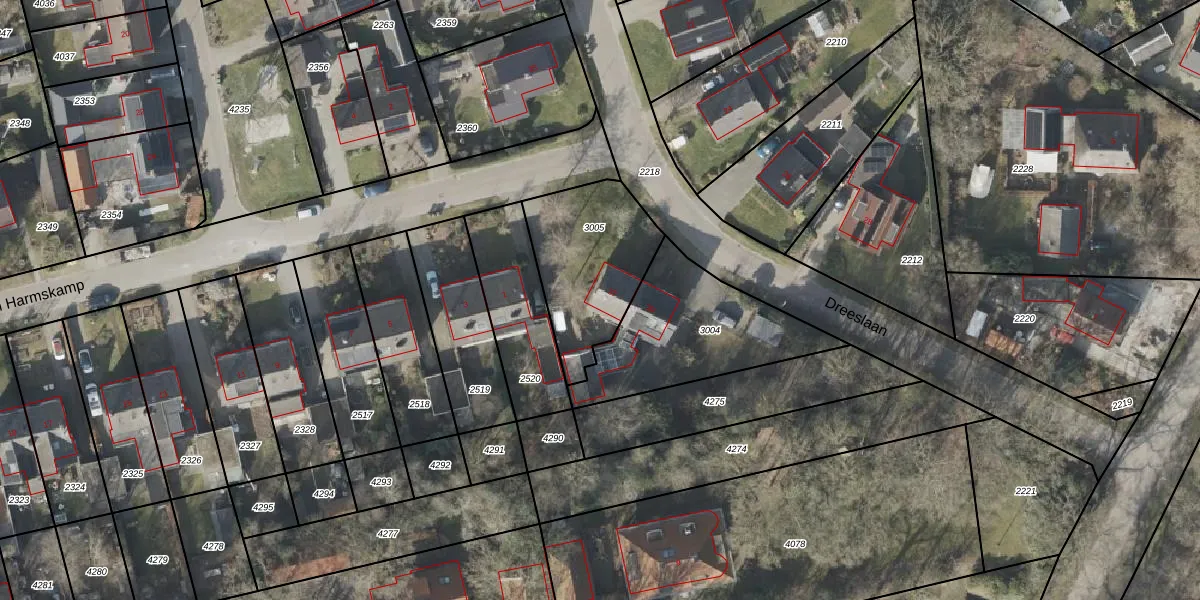 Gebruik de zoekbalk of klik op een perceel voor informatie over de adressen binnen dit perceel.