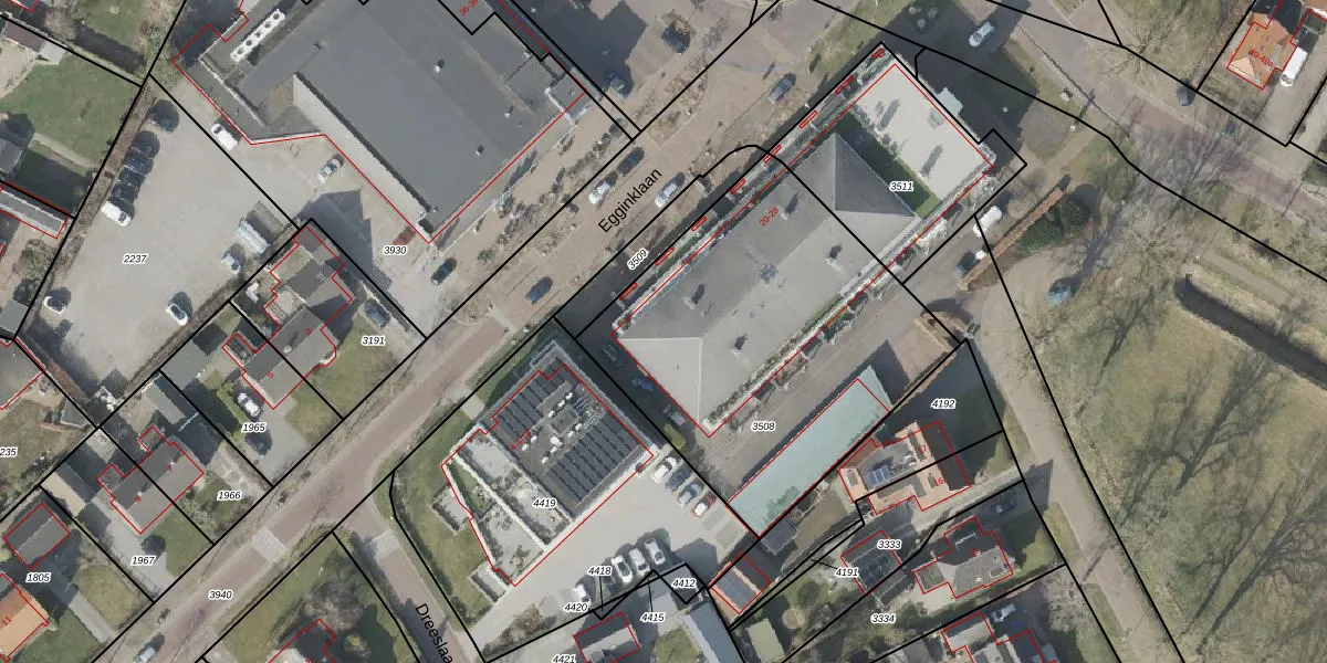 Het perceel waarop Egginklaan 2-32 staat heeft een oppervlakte van 1713 m². Dit is een zeer groot perceel. De perceeloppervlakte wordt geregistreerd door het Kadaster. Gedetailleerde informatie over de maten van dit perceel kunt u vinden in het rapport Kadastrale kaart met maatvoering van Egginklaan 2-32.
