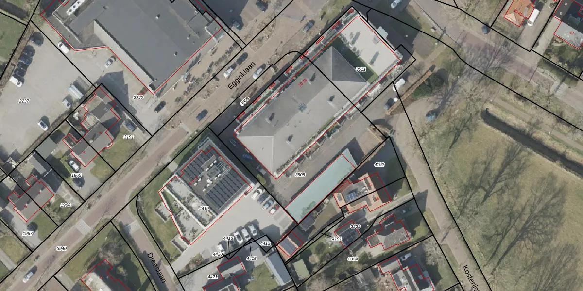 Het perceel waarop Egginklaan 2-42 staat heeft een oppervlakte van 1713 m². Dit is een zeer groot perceel. De perceeloppervlakte wordt geregistreerd door het Kadaster. Gedetailleerde informatie over de maten van dit perceel kunt u vinden in het rapport Kadastrale kaart met maatvoering van Egginklaan 2-42.