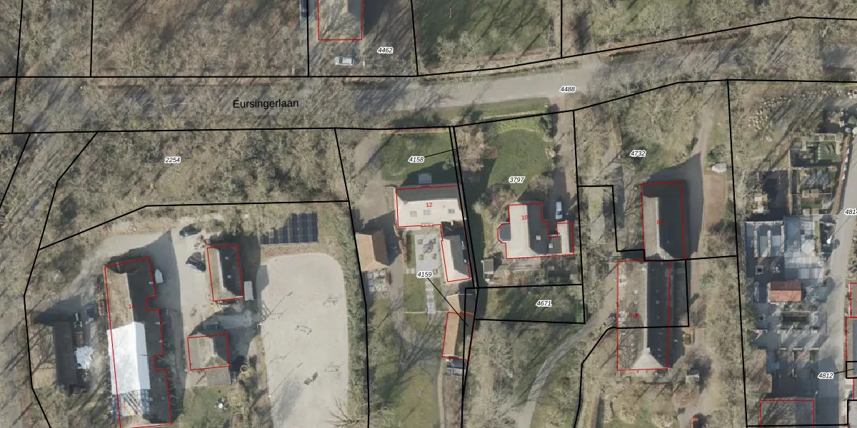 Eursingerlaan 12 is gelegen op kadastraal perceel HVT03H4160. Deze kadastrale aanduiding is uniek en wordt gebruikt door het Kadaster om eigendomsrechten en andere zakelijke rechten vast te leggen. Het perceel maakt onderdeel uit van de kadastrale gemeente Havelte.