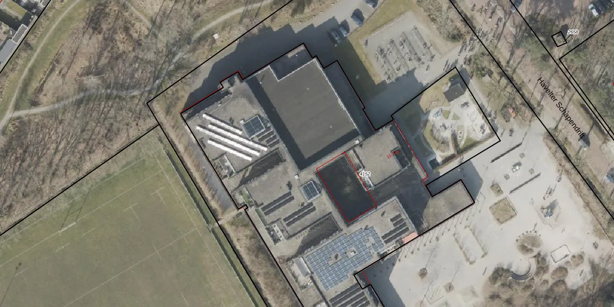 Het adres is gelegen op perceel 4152 in de sectie I en de kadastrale gemeente Havelte. De kadastrale aanduiding is aldus HVT03-I-4152. Het perceel is kleiner dan gemiddeld in Havelte. Het perceel is 5324 m² groot, terwijl het gemiddelde ligt op 1,1 ha. Het kleinste perceel in de kadastrale gemeente is 0 m² groot. De grootste perceeloppervlakte is 1,09 km². Er zijn 24 adressen aanwezig op het perceel. In de Basisregistratie Kadaster (BRK) werden de grenzen van het perceel geregistreerd op 16-02-2016.