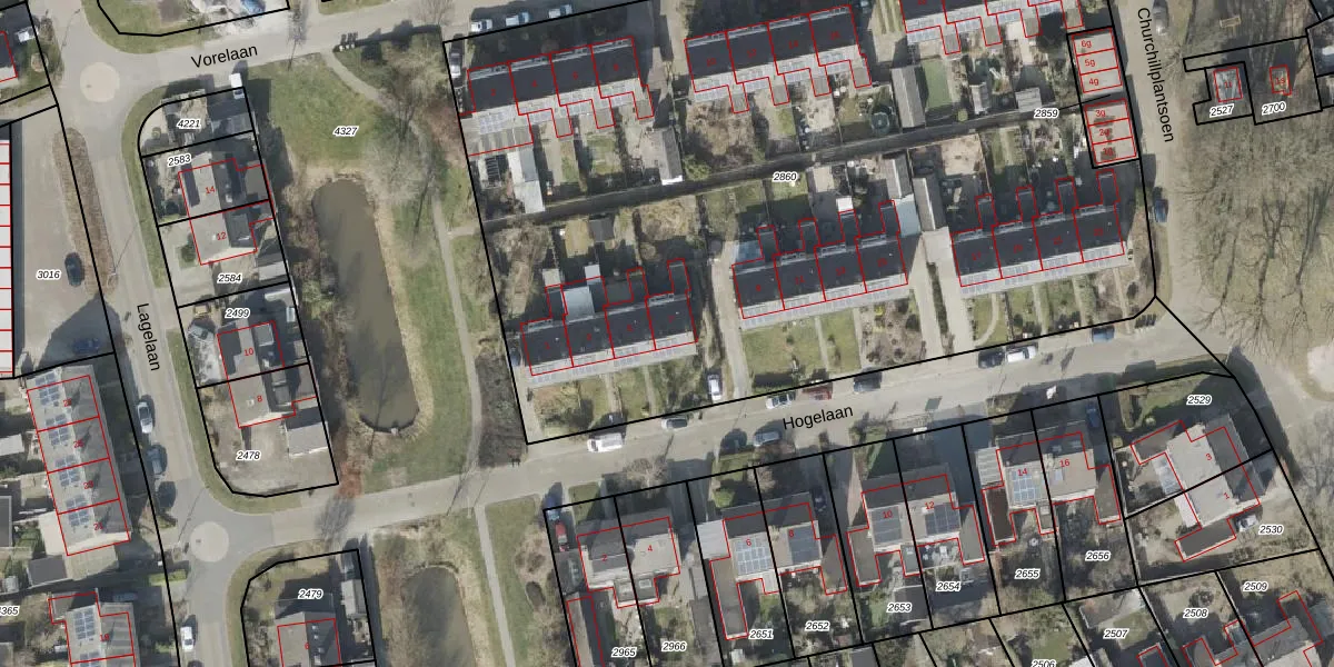 Het perceel waarop Hogelaan 7 staat heeft een oppervlakte van 5900 m². Dit is een zeer groot perceel. De perceeloppervlakte wordt geregistreerd door het Kadaster. Gedetailleerde informatie over de maten van dit perceel kunt u vinden in het rapport Kadastrale kaart met maatvoering van Hogelaan 7.