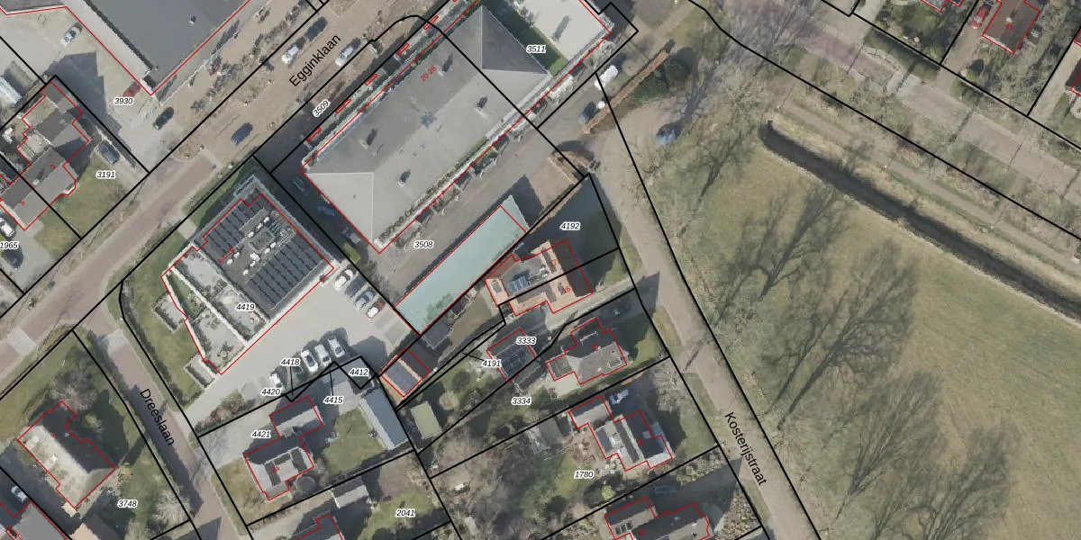 Gebruik de zoekbalk of klik op een perceel voor informatie over de adressen binnen dit perceel.