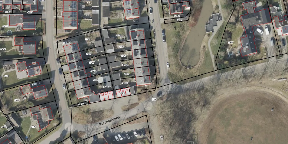 Gebruik de zoekbalk of klik op een perceel voor informatie over de adressen binnen dit perceel.