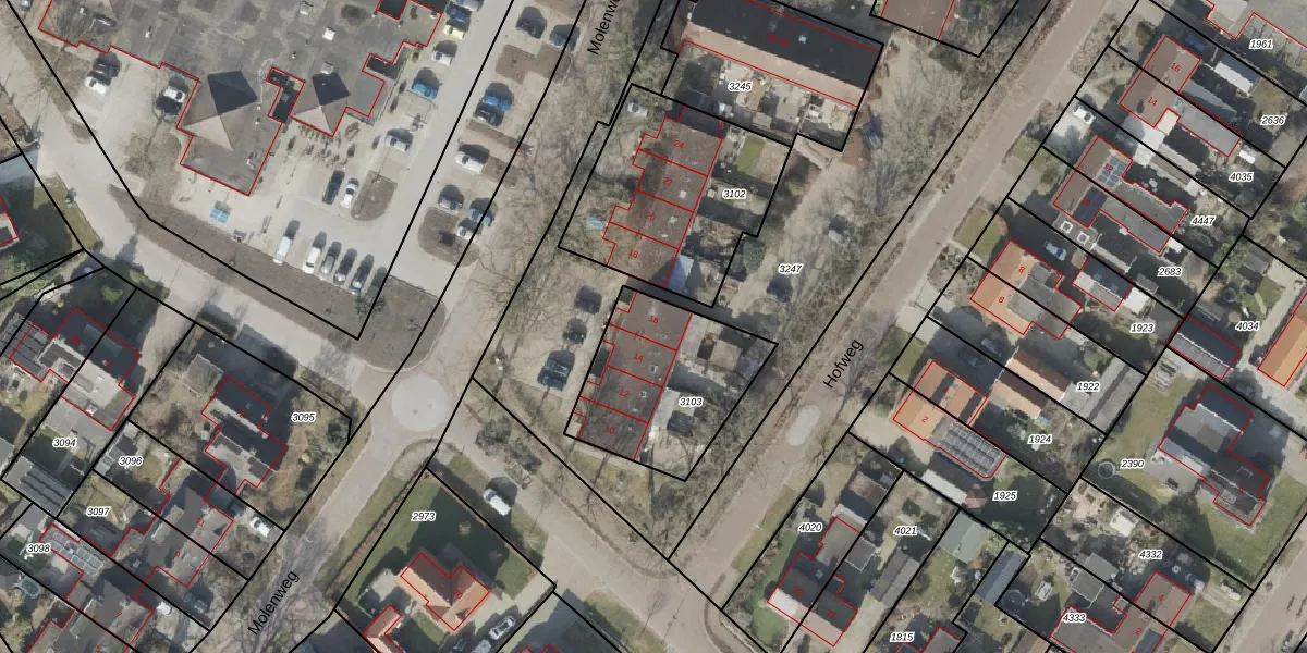 Molenweg 16 is gelegen op kadastraal perceel HVT03I3103. Deze kadastrale aanduiding is uniek en wordt gebruikt door het Kadaster om eigendomsrechten en andere zakelijke rechten vast te leggen. Het perceel maakt onderdeel uit van de kadastrale gemeente Havelte.