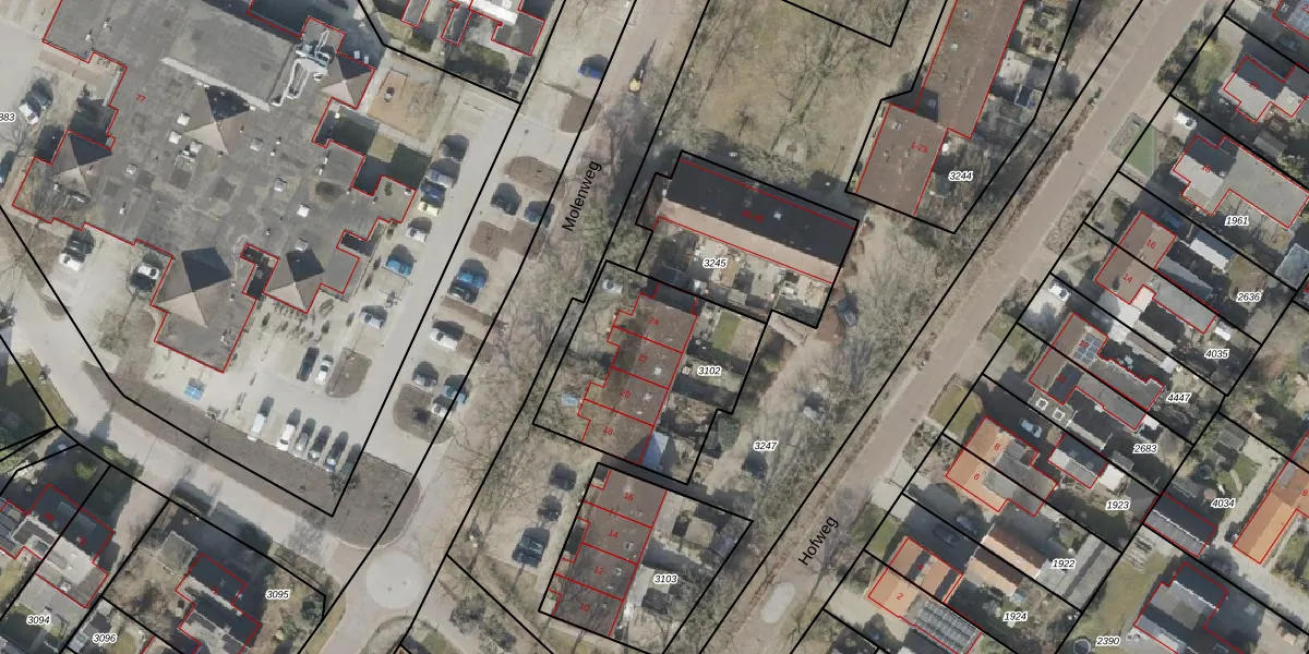 Molenweg 24 is gelegen op kadastraal perceel HVT03I3102. Deze kadastrale aanduiding is uniek en wordt gebruikt door het Kadaster om eigendomsrechten en andere zakelijke rechten vast te leggen. Het perceel maakt onderdeel uit van de kadastrale gemeente Havelte.