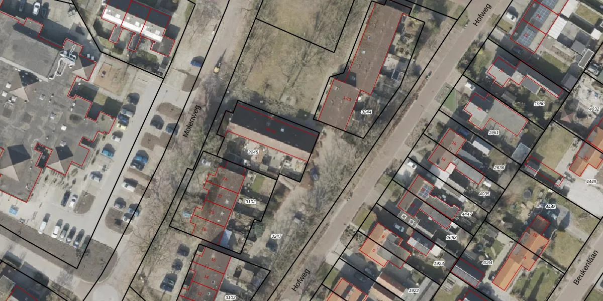 Het perceel waarop Molenweg 40 staat heeft een oppervlakte van 560 m². Dit is een groot perceel. De perceeloppervlakte wordt geregistreerd door het Kadaster. Gedetailleerde informatie over de maten van dit perceel kunt u vinden in het rapport Kadastrale kaart met maatvoering van Molenweg 40.