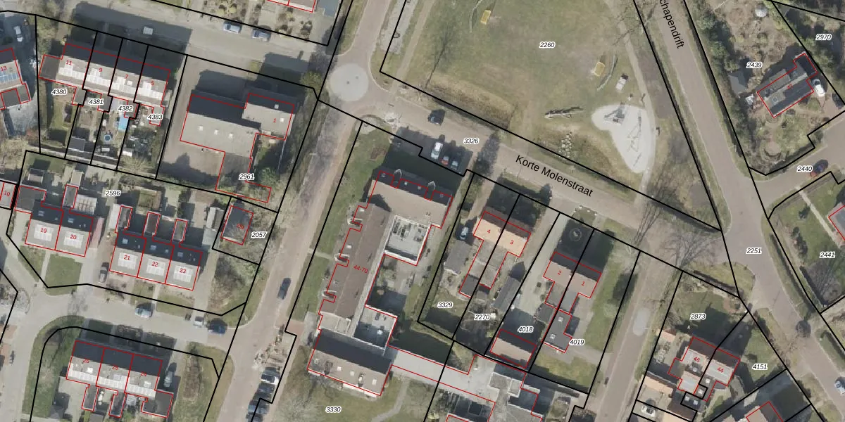 Het perceel waarop Molenweg 56 staat heeft een oppervlakte van 2563 m². Dit is een zeer groot perceel. De perceeloppervlakte wordt geregistreerd door het Kadaster. Gedetailleerde informatie over de maten van dit perceel kunt u vinden in het rapport Kadastrale kaart met maatvoering van Molenweg 56.