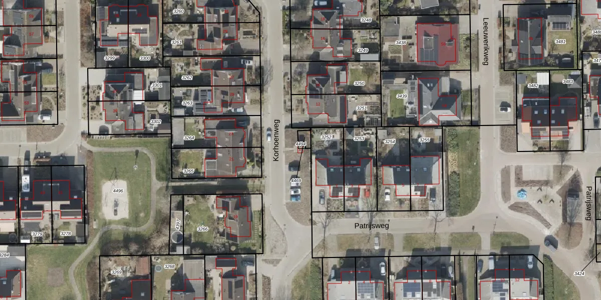 Gebruik de zoekbalk of klik op een perceel voor informatie over de adressen binnen dit perceel.