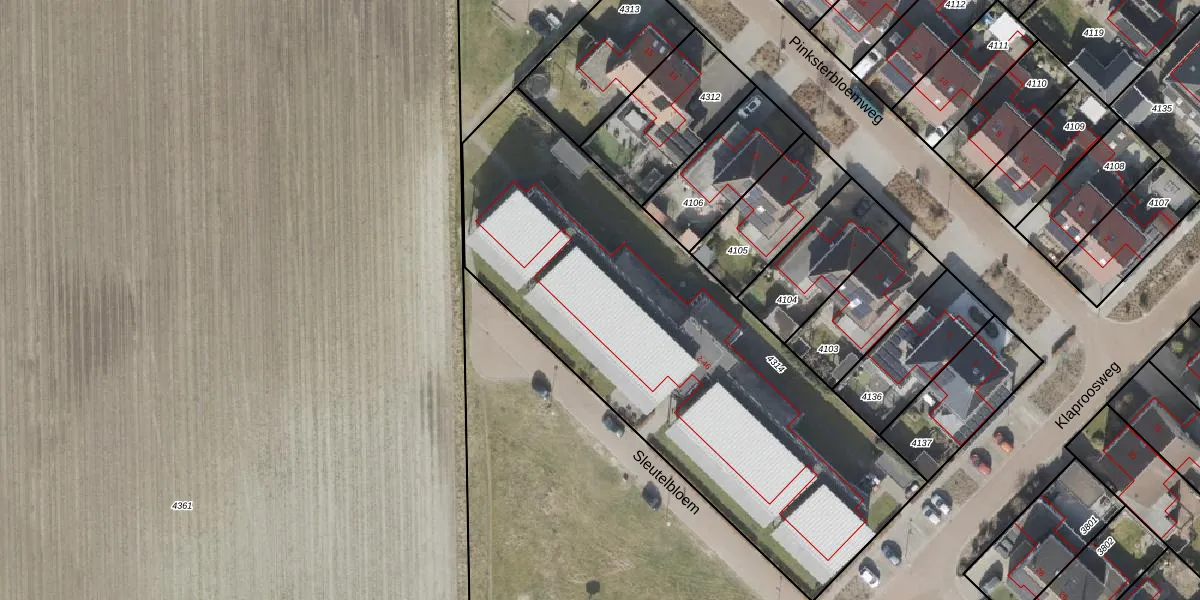 Het perceel waarop Sleutelbloem 38 staat heeft een oppervlakte van 2525 m². Dit is een zeer groot perceel. De perceeloppervlakte wordt geregistreerd door het Kadaster. Gedetailleerde informatie over de maten van dit perceel kunt u vinden in het rapport Kadastrale kaart met maatvoering van Sleutelbloem 38.