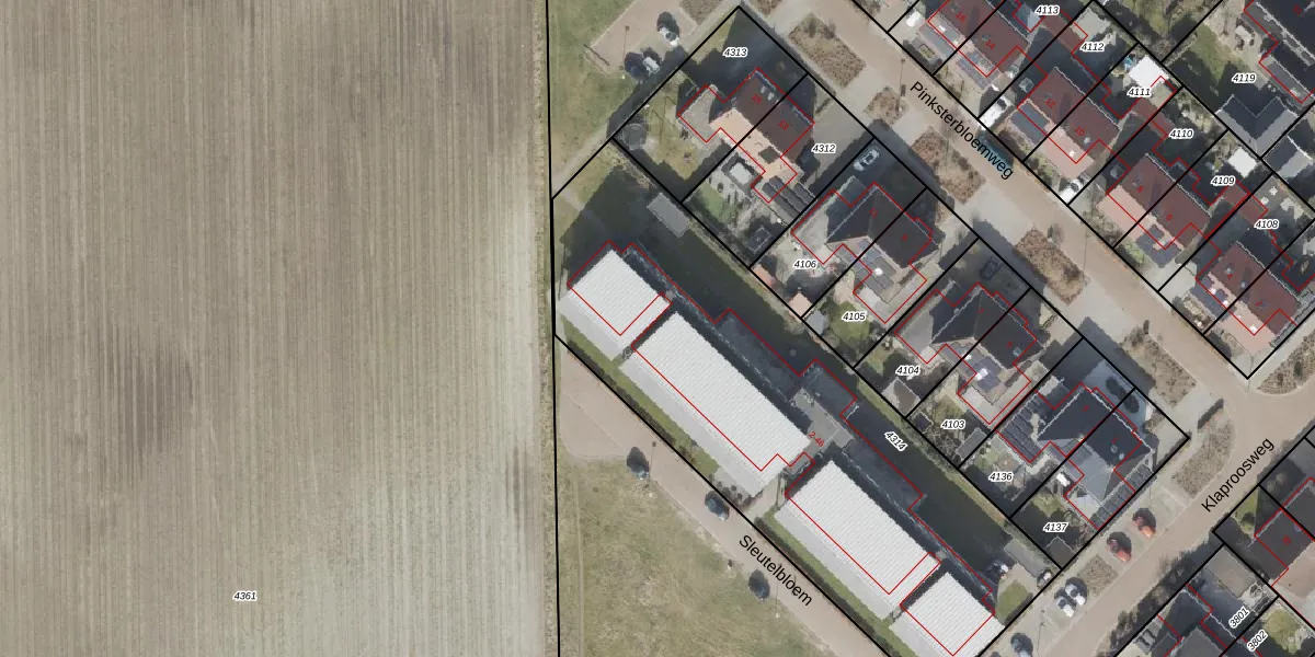 Het perceel waarop Sleutelbloem 46 staat heeft een oppervlakte van 2525 m². Dit is een zeer groot perceel. De perceeloppervlakte wordt geregistreerd door het Kadaster. Gedetailleerde informatie over de maten van dit perceel kunt u vinden in het rapport Kadastrale kaart met maatvoering van Sleutelbloem 46.