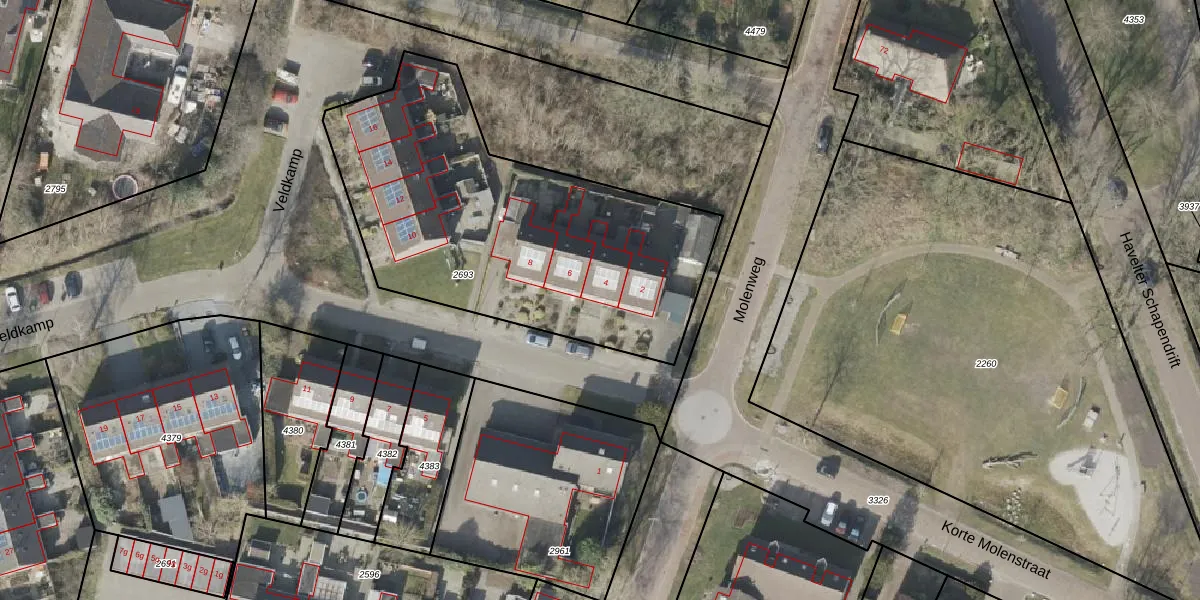 Veldkamp 4 is gelegen op kadastraal perceel HVT03I2693. Deze kadastrale aanduiding is uniek en wordt gebruikt door het Kadaster om eigendomsrechten en andere zakelijke rechten vast te leggen. Het perceel maakt onderdeel uit van de kadastrale gemeente Havelte.