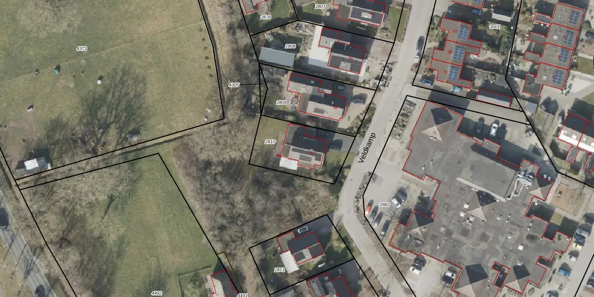 Het perceel waarop Veldkamp 60 staat heeft een oppervlakte van 530 m². Dit is een groot perceel. De perceeloppervlakte wordt geregistreerd door het Kadaster. Gedetailleerde informatie over de maten van dit perceel kunt u vinden in het rapport Kadastrale kaart met maatvoering van Veldkamp 60.