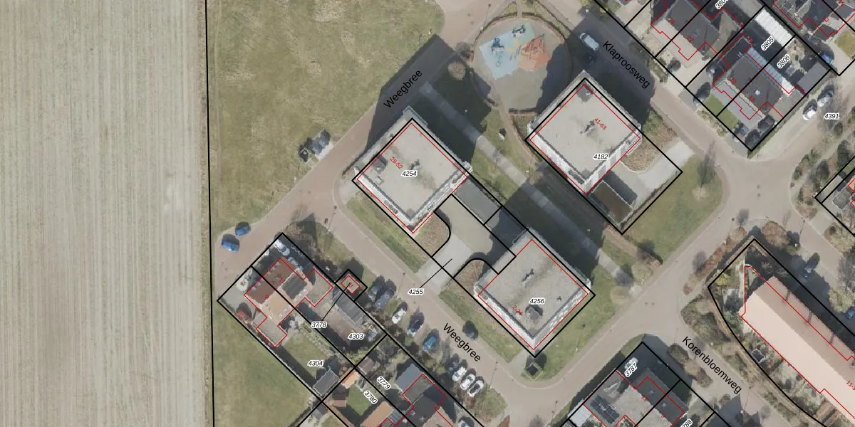 Het perceel waarop Weegbree 28 staat heeft een oppervlakte van 503 m². Dit is een groot perceel. De perceeloppervlakte wordt geregistreerd door het Kadaster. Gedetailleerde informatie over de maten van dit perceel kunt u vinden in het rapport Kadastrale kaart met maatvoering van Weegbree 28.