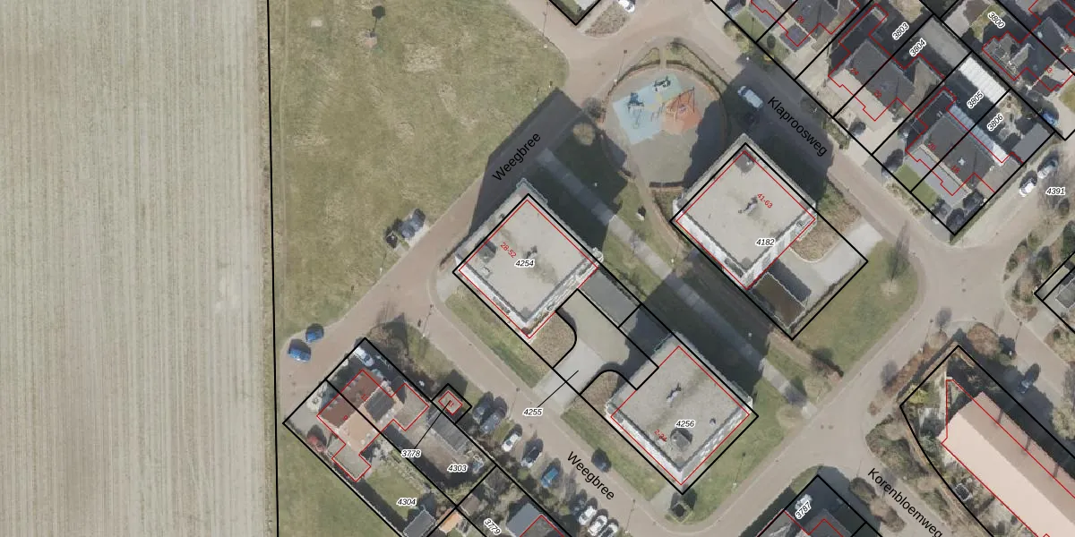 Het perceel waarop Weegbree 46 staat heeft een oppervlakte van 503 m². Dit is een groot perceel. De perceeloppervlakte wordt geregistreerd door het Kadaster. Gedetailleerde informatie over de maten van dit perceel kunt u vinden in het rapport Kadastrale kaart met maatvoering van Weegbree 46.