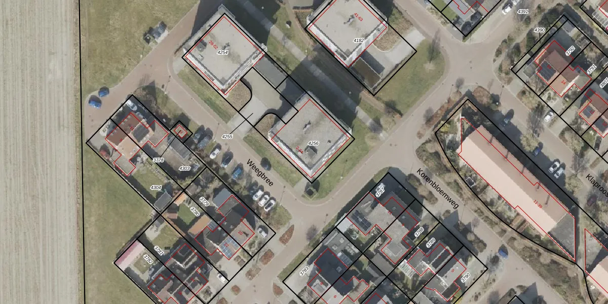 Het perceel waarop Weegbree 6 staat heeft een oppervlakte van 519 m². Dit is een groot perceel. De perceeloppervlakte wordt geregistreerd door het Kadaster. Gedetailleerde informatie over de maten van dit perceel kunt u vinden in het rapport Kadastrale kaart met maatvoering van Weegbree 6.