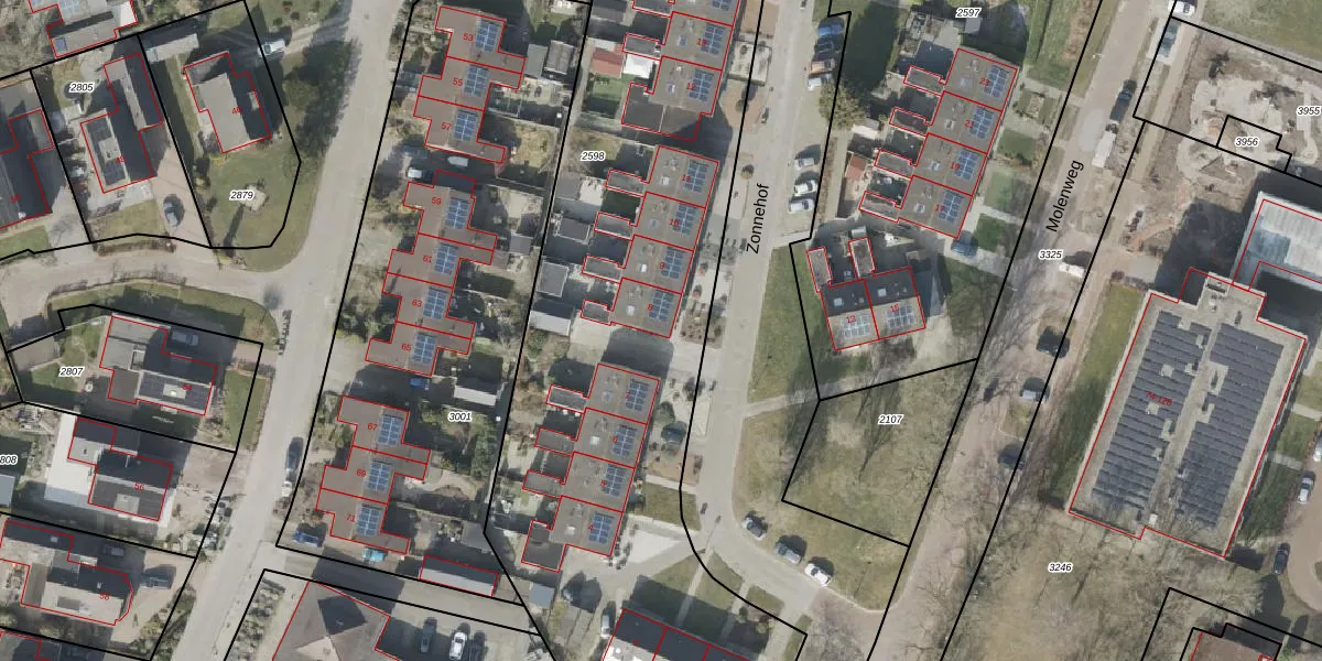 Het perceel waarop Zonnehof 8 staat heeft een oppervlakte van 4429 m². Dit is een zeer groot perceel. De perceeloppervlakte wordt geregistreerd door het Kadaster. Gedetailleerde informatie over de maten van dit perceel kunt u vinden in het rapport Kadastrale kaart met maatvoering van Zonnehof 8.