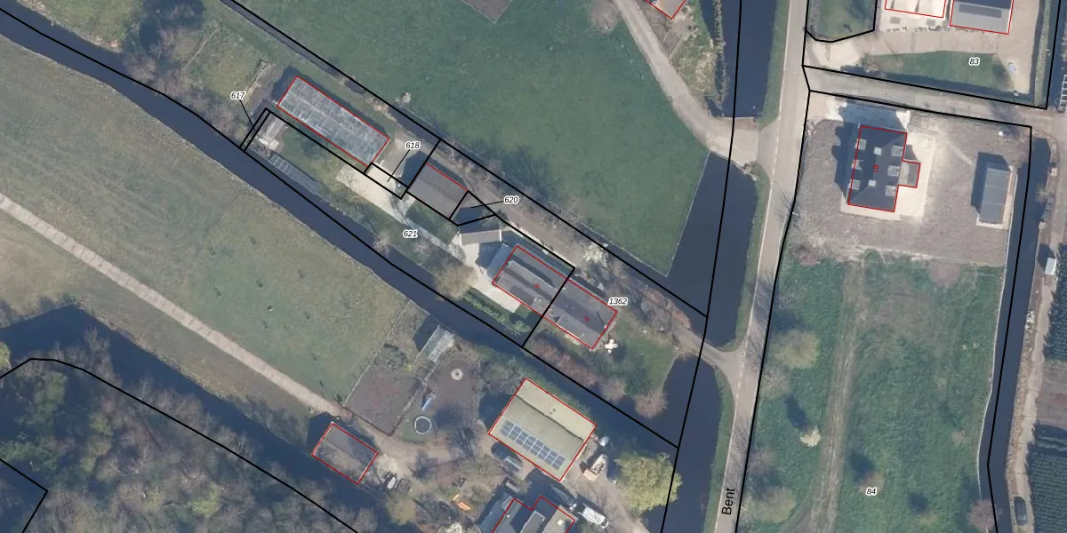Het perceel waarop Bent 8 staat heeft een oppervlakte van 844 m². Dit is een groot perceel. De perceeloppervlakte wordt geregistreerd door het Kadaster. Gedetailleerde informatie over de maten van dit perceel kunt u vinden in het rapport Kadastrale kaart met maatvoering van Bent 8.