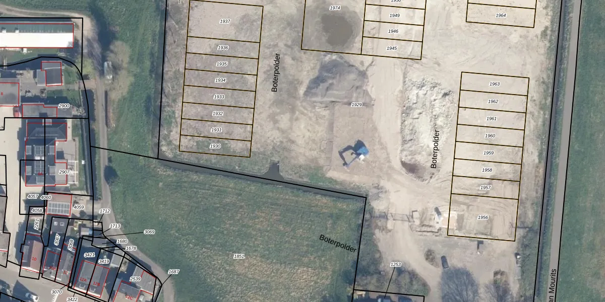 Het perceel waarop Boterpolder 14 staat heeft een oppervlakte van 1,2 ha. Dit is een zeer groot perceel. De perceeloppervlakte wordt geregistreerd door het Kadaster. Gedetailleerde informatie over de maten van dit perceel kunt u vinden in het rapport Kadastrale kaart met maatvoering van Boterpolder 14.