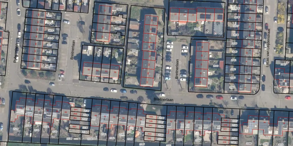 Breitnerlaan 55 is gelegen op kadastraal perceel HZW00G2095. Deze kadastrale aanduiding is uniek en wordt gebruikt door het Kadaster om eigendomsrechten en andere zakelijke rechten vast te leggen. Het perceel maakt onderdeel uit van de kadastrale gemeente Hazerswoude.