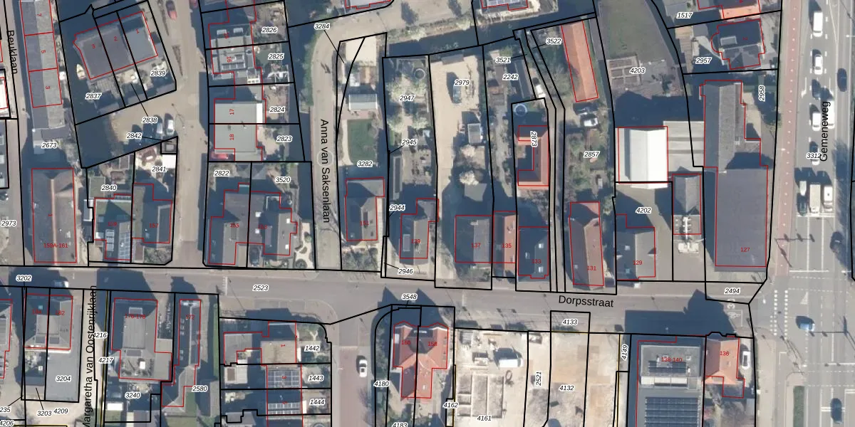 Het perceel waarop Dorpsstraat 139 staat heeft een oppervlakte van 618 m². Dit is een groot perceel. De perceeloppervlakte wordt geregistreerd door het Kadaster. Gedetailleerde informatie over de maten van dit perceel kunt u vinden in het rapport Kadastrale kaart met maatvoering van Dorpsstraat 139.