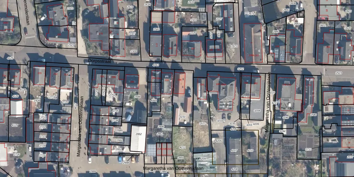 Het perceel waarop Dorpsstraat 198 staat heeft een oppervlakte van 365 m². Dit is een groot perceel. De perceeloppervlakte wordt geregistreerd door het Kadaster. Gedetailleerde informatie over de maten van dit perceel kunt u vinden in het rapport Kadastrale kaart met maatvoering van Dorpsstraat 198.