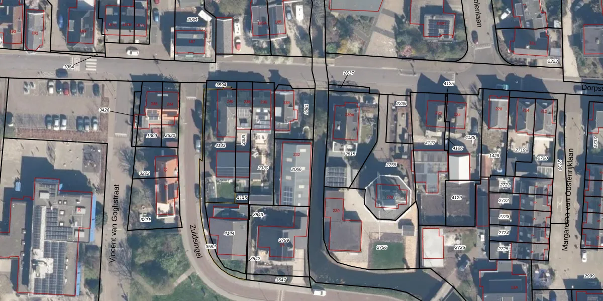 Dorpsstraat 232 is gelegen op kadastraal perceel HZW00E2066. Deze kadastrale aanduiding is uniek en wordt gebruikt door het Kadaster om eigendomsrechten en andere zakelijke rechten vast te leggen. Het perceel maakt onderdeel uit van de kadastrale gemeente Hazerswoude.