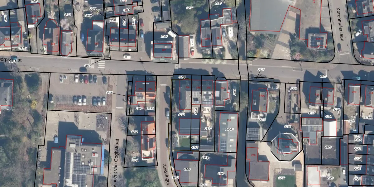 Het perceel waarop Dorpsstraat 240 staat heeft een oppervlakte van 397 m². Dit is een groot perceel. De perceeloppervlakte wordt geregistreerd door het Kadaster. Gedetailleerde informatie over de maten van dit perceel kunt u vinden in het rapport Kadastrale kaart met maatvoering van Dorpsstraat 240.