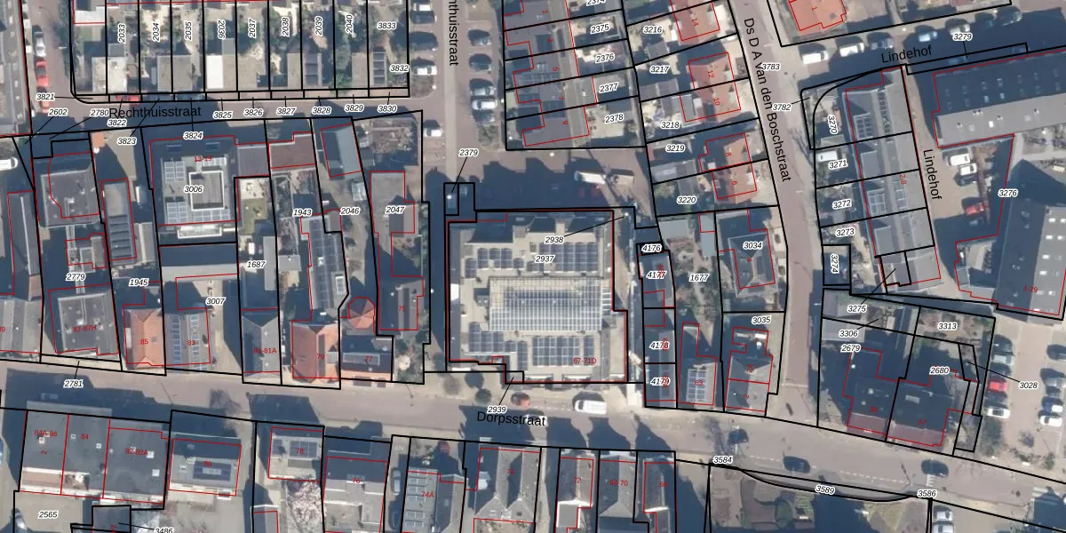Het perceel waarop Dorpsstraat 69-E staat heeft een oppervlakte van 974 m². Dit is een groot perceel. De perceeloppervlakte wordt geregistreerd door het Kadaster. Gedetailleerde informatie over de maten van dit perceel kunt u vinden in het rapport Kadastrale kaart met maatvoering van Dorpsstraat 69-E.