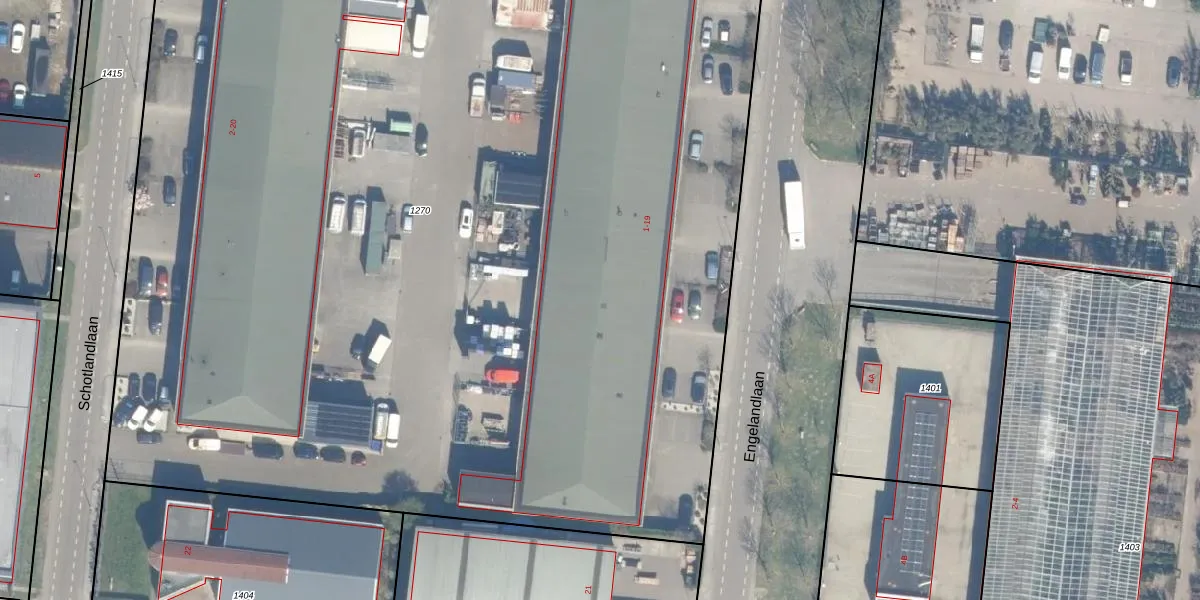 Het perceel waarop Engelandlaan 13 staat heeft een oppervlakte van 1,2 ha. Dit is een zeer groot perceel. De perceeloppervlakte wordt geregistreerd door het Kadaster. Gedetailleerde informatie over de maten van dit perceel kunt u vinden in het rapport Kadastrale kaart met maatvoering van Engelandlaan 13.