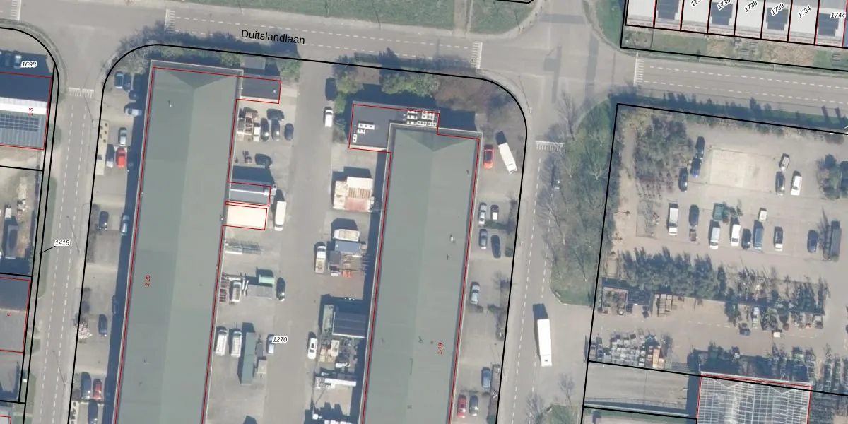 Het adres ligt op het perceel HZW00-D-1270, dat zich in de kadastrale gemeente Hazerswoude bevindt. Het perceel is met 1,2 ha relatief groot. Het gemiddelde ligt in de kadastrale gemeente Hazerswoude op 4647,01 m². De grootste perceeloppervlakte in de kadastrale gemeente is 34,4 ha. De kleinste oppervlakte bedraagt 0 m². Er zijn 20 adressen aanwezig op het perceel. In de Basisregistratie Kadaster (BRK) werden de grenzen van het perceel geregistreerd op 06-07-2001.