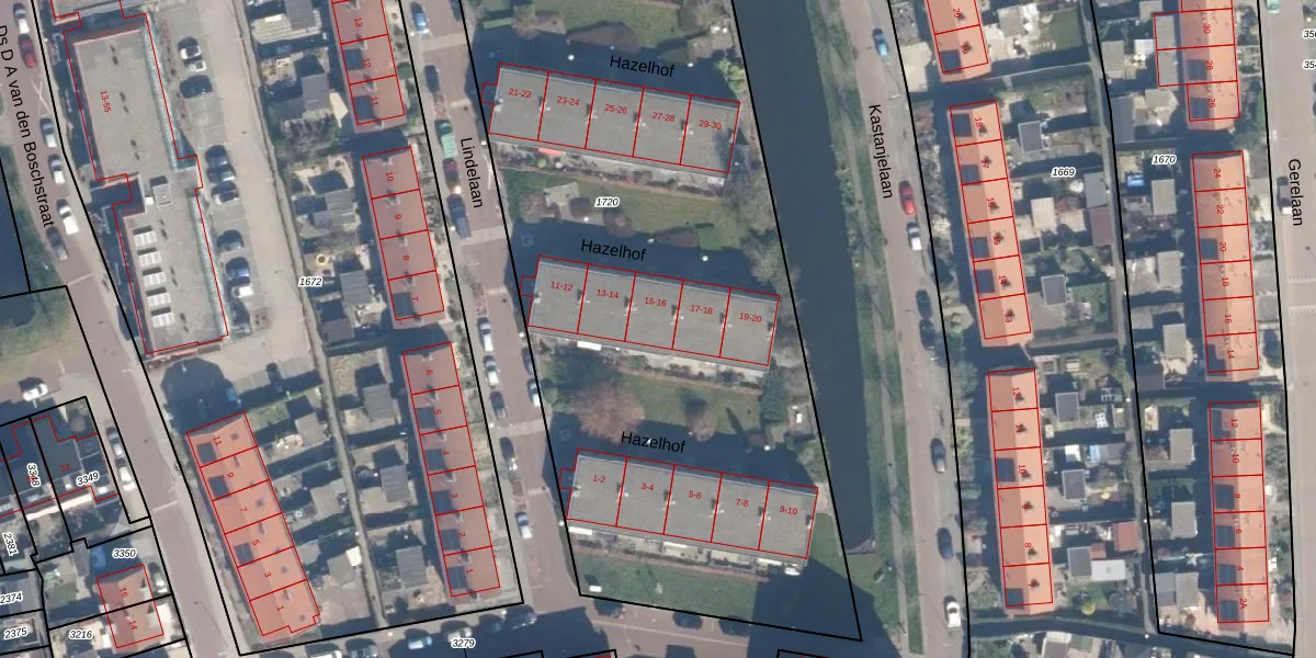 Hazelhof 16 is gelegen op kadastraal perceel HZW00E1720. Deze kadastrale aanduiding is uniek en wordt gebruikt door het Kadaster om eigendomsrechten en andere zakelijke rechten vast te leggen. Het perceel maakt onderdeel uit van de kadastrale gemeente Hazerswoude.