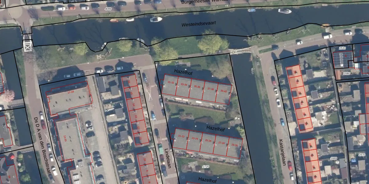 Het adres ligt op het perceel HZW00-E-1720, dat zich in de kadastrale gemeente Hazerswoude bevindt. Het perceel is met 5065 m² relatief groot. Het gemiddelde ligt in de kadastrale gemeente Hazerswoude op 4668,82 m². Het kleinste perceel in de kadastrale gemeente is 0 m² groot. De grootste perceeloppervlakte is 34,4 ha. Er zijn 40 adressen aanwezig op het perceel. De laatste wijziging in het de Basisregistratie Kadaster (BRK) was op 13-01-2011.