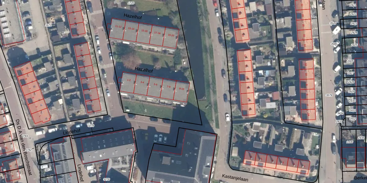 Het perceel waarop Hazelhof 9 staat heeft een oppervlakte van 5065 m². Dit is een zeer groot perceel. De perceeloppervlakte wordt geregistreerd door het Kadaster. Gedetailleerde informatie over de maten van dit perceel kunt u vinden in het rapport Kadastrale kaart met maatvoering van Hazelhof 9.