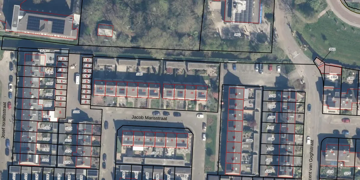 Het perceel waarop Jacob Marisstraat 24 staat heeft een oppervlakte van 1946 m². Dit is een zeer groot perceel. De perceeloppervlakte wordt geregistreerd door het Kadaster. Gedetailleerde informatie over de maten van dit perceel kunt u vinden in het rapport Kadastrale kaart met maatvoering van Jacob Marisstraat 24.