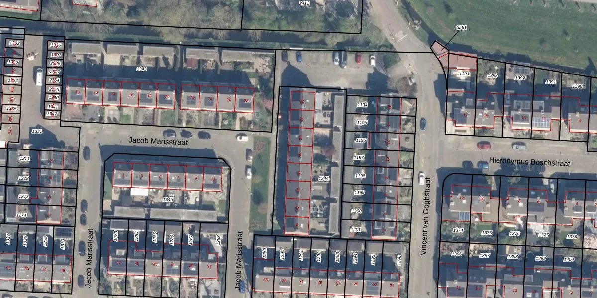 Jacob Marisstraat 36 is gelegen op kadastraal perceel HZW00E1344. Deze kadastrale aanduiding is uniek en wordt gebruikt door het Kadaster om eigendomsrechten en andere zakelijke rechten vast te leggen. Het perceel maakt onderdeel uit van de kadastrale gemeente Hazerswoude.