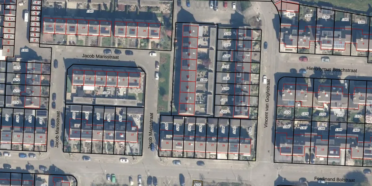 Jacob Marisstraat 42 is gelegen op kadastraal perceel HZW00E1344. Deze kadastrale aanduiding is uniek en wordt gebruikt door het Kadaster om eigendomsrechten en andere zakelijke rechten vast te leggen. Het perceel maakt onderdeel uit van de kadastrale gemeente Hazerswoude.