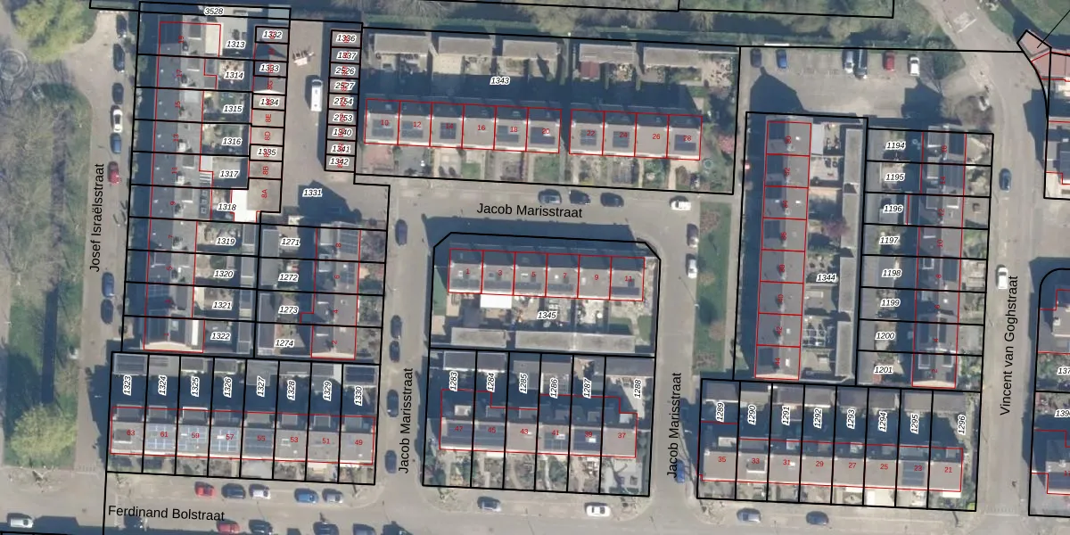 Het perceel waarop Jacob Marisstraat 5 staat heeft een oppervlakte van 911 m². Dit is een groot perceel. De perceeloppervlakte wordt geregistreerd door het Kadaster. Gedetailleerde informatie over de maten van dit perceel kunt u vinden in het rapport Kadastrale kaart met maatvoering van Jacob Marisstraat 5.