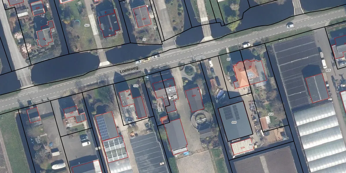 Loeteweg 25 is gelegen op kadastraal perceel HZW00K455. Deze kadastrale aanduiding is uniek en wordt gebruikt door het Kadaster om eigendomsrechten en andere zakelijke rechten vast te leggen. Het perceel maakt onderdeel uit van de kadastrale gemeente Hazerswoude.