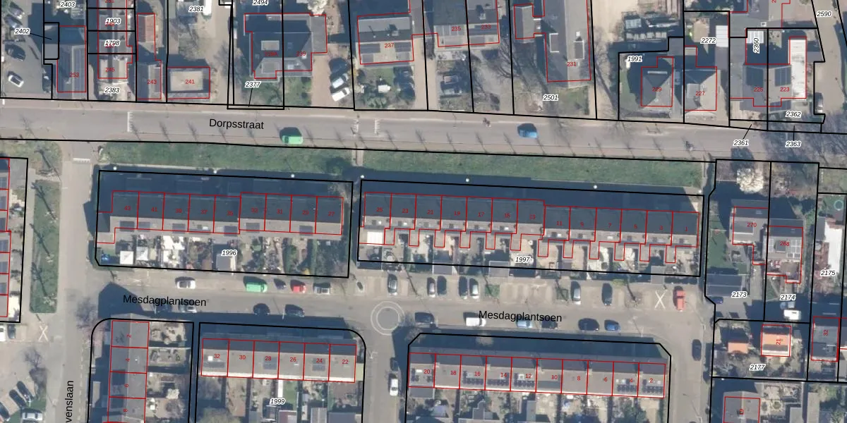Mesdagplantsoen 21 is gelegen op kadastraal perceel HZW00G1997. Deze kadastrale aanduiding is uniek en wordt gebruikt door het Kadaster om eigendomsrechten en andere zakelijke rechten vast te leggen. Het perceel maakt onderdeel uit van de kadastrale gemeente Hazerswoude.