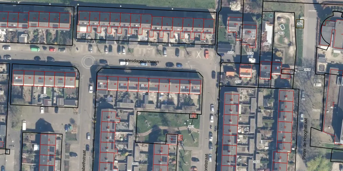 Het perceel waarop Mesdagplantsoen 6 staat heeft een oppervlakte van 4010 m². Dit is een zeer groot perceel. De perceeloppervlakte wordt geregistreerd door het Kadaster. Gedetailleerde informatie over de maten van dit perceel kunt u vinden in het rapport Kadastrale kaart met maatvoering van Mesdagplantsoen 6.