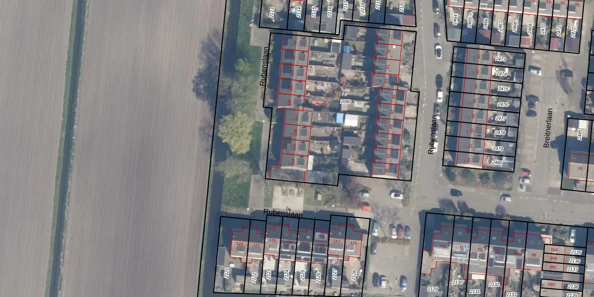 Rubenslaan 111 is gelegen op kadastraal perceel HZW00G2090. Deze kadastrale aanduiding is uniek en wordt gebruikt door het Kadaster om eigendomsrechten en andere zakelijke rechten vast te leggen. Het perceel maakt onderdeel uit van de kadastrale gemeente Hazerswoude.