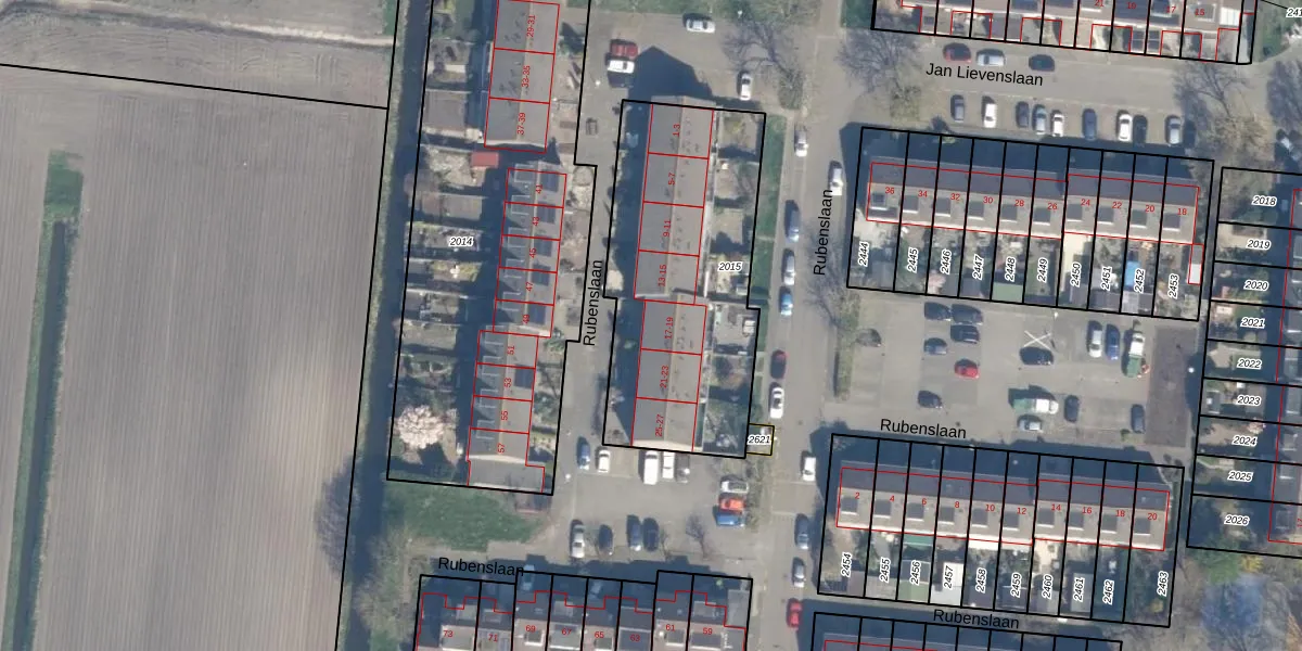 Rubenslaan 17 is gelegen op kadastraal perceel HZW00G2015. Deze kadastrale aanduiding is uniek en wordt gebruikt door het Kadaster om eigendomsrechten en andere zakelijke rechten vast te leggen. Het perceel maakt onderdeel uit van de kadastrale gemeente Hazerswoude.