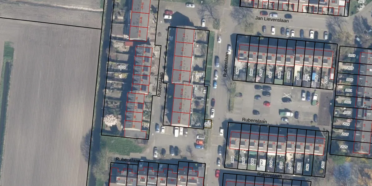 Rubenslaan 19 is gelegen op kadastraal perceel HZW00G2015. Deze kadastrale aanduiding is uniek en wordt gebruikt door het Kadaster om eigendomsrechten en andere zakelijke rechten vast te leggen. Het perceel maakt onderdeel uit van de kadastrale gemeente Hazerswoude.