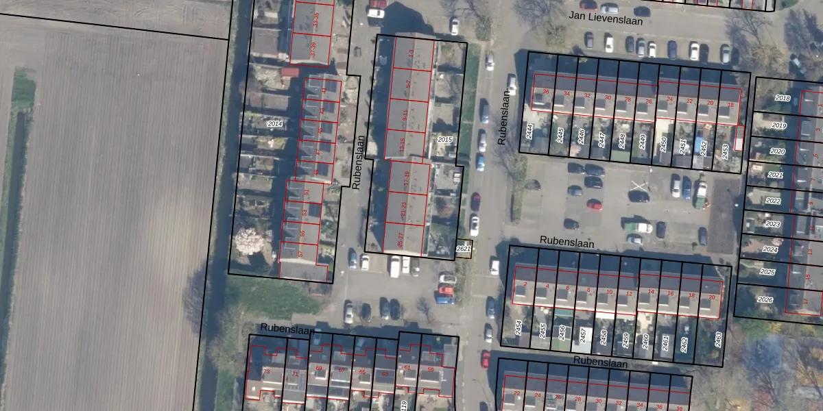 Het perceel waarop Rubenslaan 23 staat heeft een oppervlakte van 1163 m². Dit is een zeer groot perceel. De perceeloppervlakte wordt geregistreerd door het Kadaster. Gedetailleerde informatie over de maten van dit perceel kunt u vinden in het rapport Kadastrale kaart met maatvoering van Rubenslaan 23.