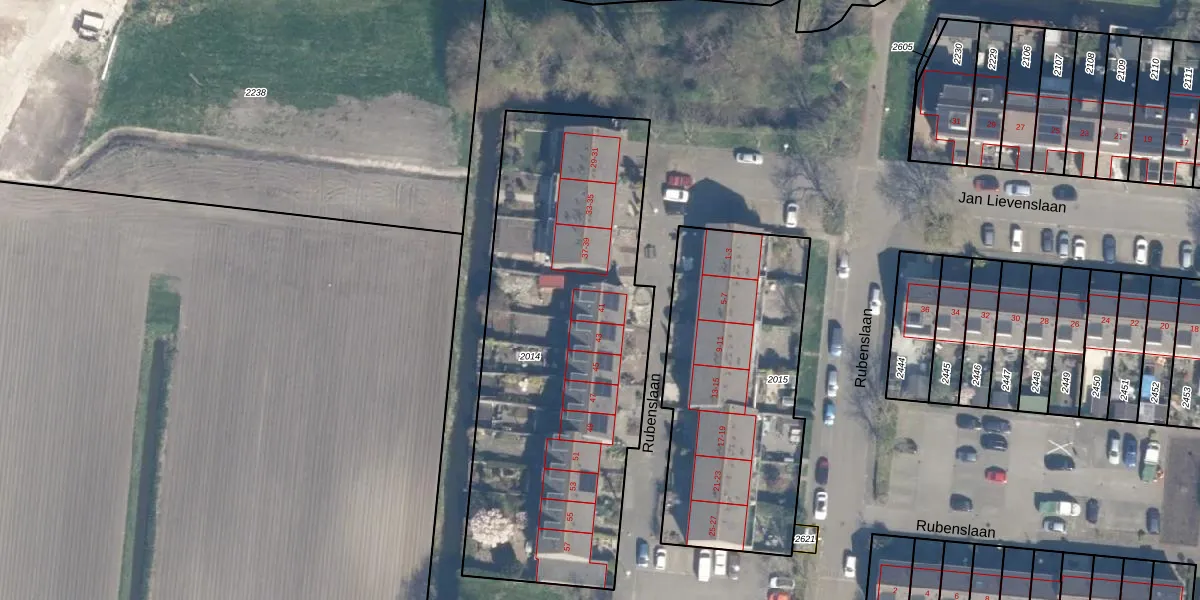 Rubenslaan 41 is gelegen op kadastraal perceel HZW00G2014. Deze kadastrale aanduiding is uniek en wordt gebruikt door het Kadaster om eigendomsrechten en andere zakelijke rechten vast te leggen. Het perceel maakt onderdeel uit van de kadastrale gemeente Hazerswoude.